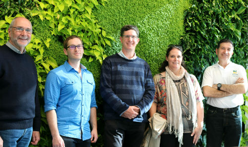 Study Tour Team 2015(Left to Right): Chris Champion, Nathan Koenig (NSW), Michael de Heus (SA), Kimberly Brosztl WA), Raad Jarjees (QLD). Green wall within ecoBuilding, Gladsaxe, Denmark.