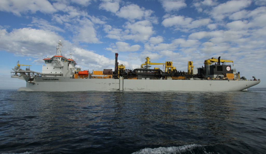 Dredge contractor Jan de Nul were awarded the dredging tender. The Charles Darwin trailing suction hopper pumped sand from a carefully chosen, environmentally-sound site to the NPR in a water and sand slurry at a ratio of about 5:1. As part of a range of environmental safeguards, a 24/7 real-time monitoring program of the dredge works was put in place, to ensure water quality limits were met throughout the process.