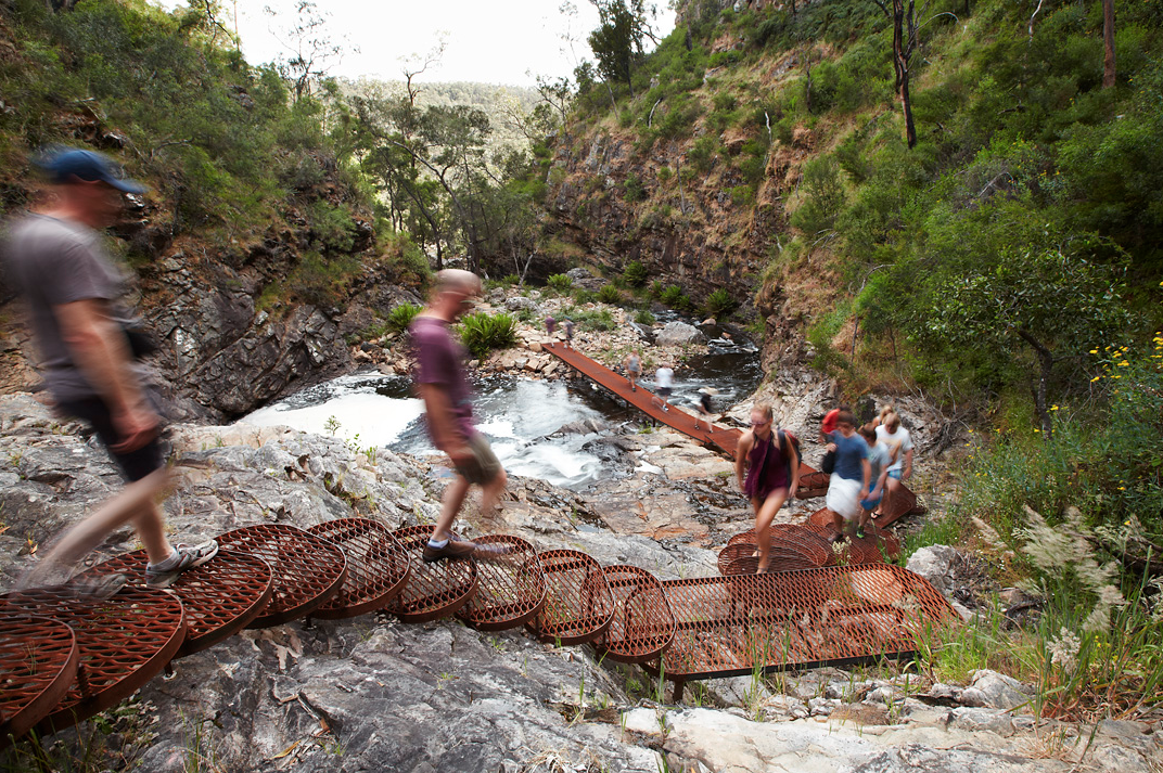 When flooding in 2011 washed away a footbridge in Victoria’s Grampians National Park, Parks Victoria could have simply rebuilt it. Instead, they chose to provide visitors with a far more intimate journey through the stunning MacKenzie Falls Gorge.