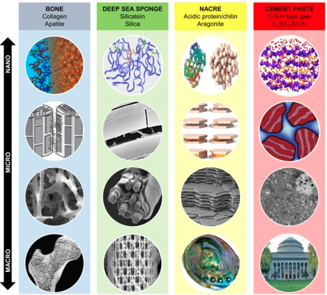 Construction and Building Materials journal, a team from Massachusetts Institute of Technology contrasts cement paste — concrete’s binding ingredient – with the structure and properties of natural materials such as bones, shells, and deep-sea sponges.