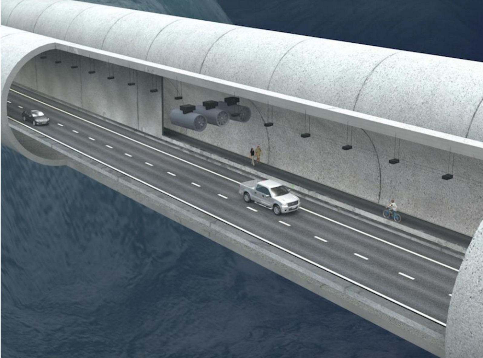 The tunnels would enter the bedrock beneath the fjord on each side and the submerged tubes would be steadied by being attached to pontoons on the surface of the sea, with big enough gaps for ferries to safely pass through. The structure might also be bolted to the bedrock below, for extra stability.