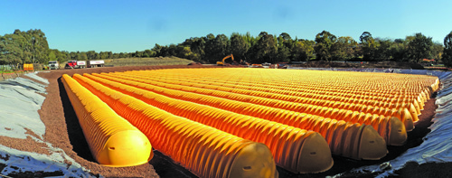 At all three sites, underground storage will ensure that no open space is lost. The water will be stored in a total of 1300 large ribbed arches buried at up to two metres deep and partially filled with scoria, a light volcanic rock that will play a valuable role in terms of algae build up. A bioactive film on the scoria contributes further to the removal of nitrogen and phosphorous. After these passive components, litter traps, wetlands, sand filters and ultra violet light will further assist in cleaning the stormwater for irrigation use.